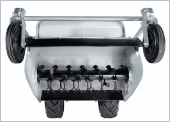 vágóegység 38 db Y formájú késsel rendelkezik, és kivételes vágásminőséget biztosít. A rögzíthető, elfordítható első kerekek lehetővé teszik a kívánt