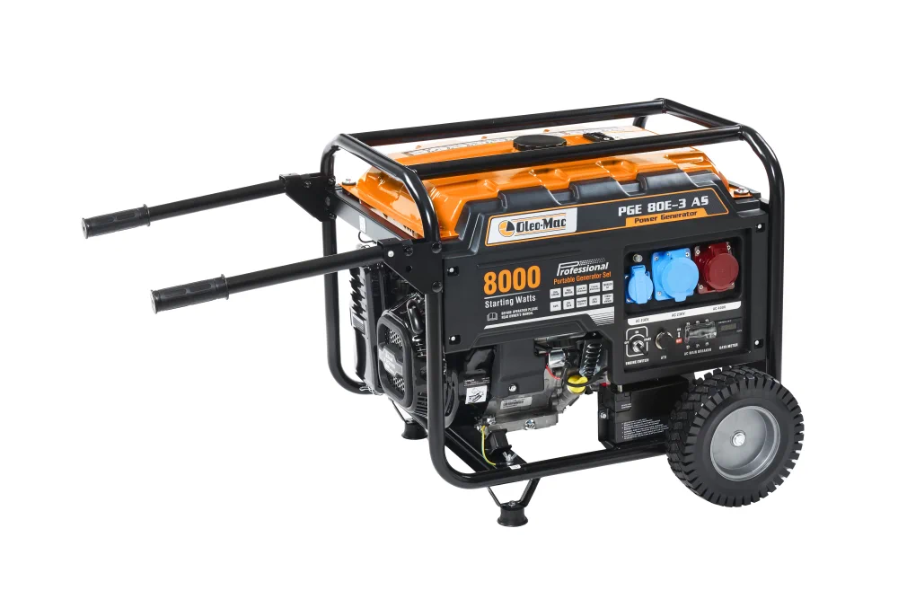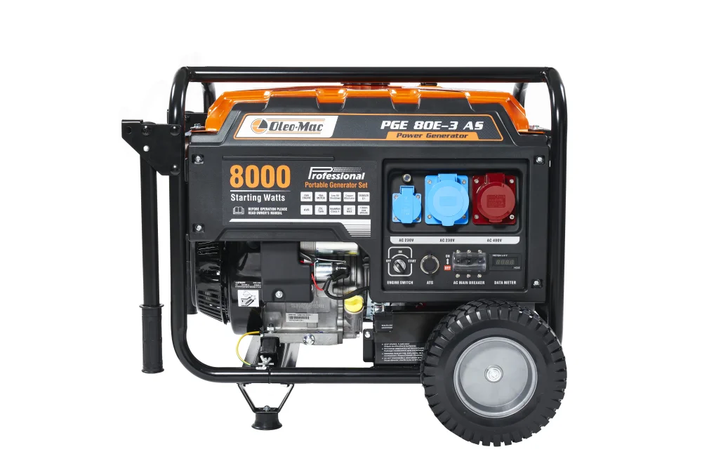 A PGE 80E-3 DCS modell 400 V-os áramellátásra is képes, így alkalmas nagy teljesítményt igénylő ipari alkalmazásokhoz, például szerszámgépek működtetéséhez, rönkhasítókhoz, hegesztőgépekhez |